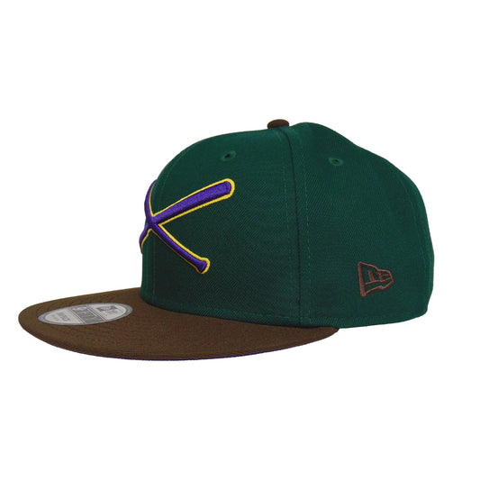 JustFitteds Crossed Bats Logo New Era 9FIFTY DK Green Brown